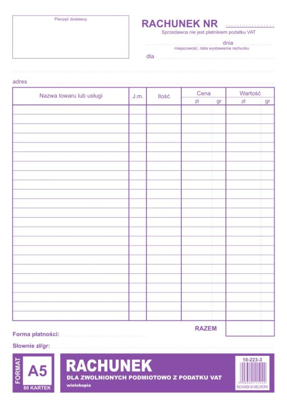 223-3 Rachunek A5 dla zw.z VAT (pion) wielokopia MICHALCZYK i PROKOP